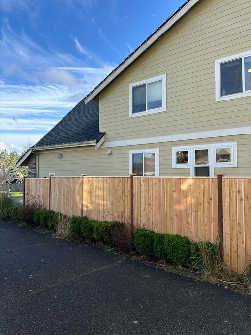 - Custom cedar and fir fencing with gates sized for vehicles or pedestrian entry