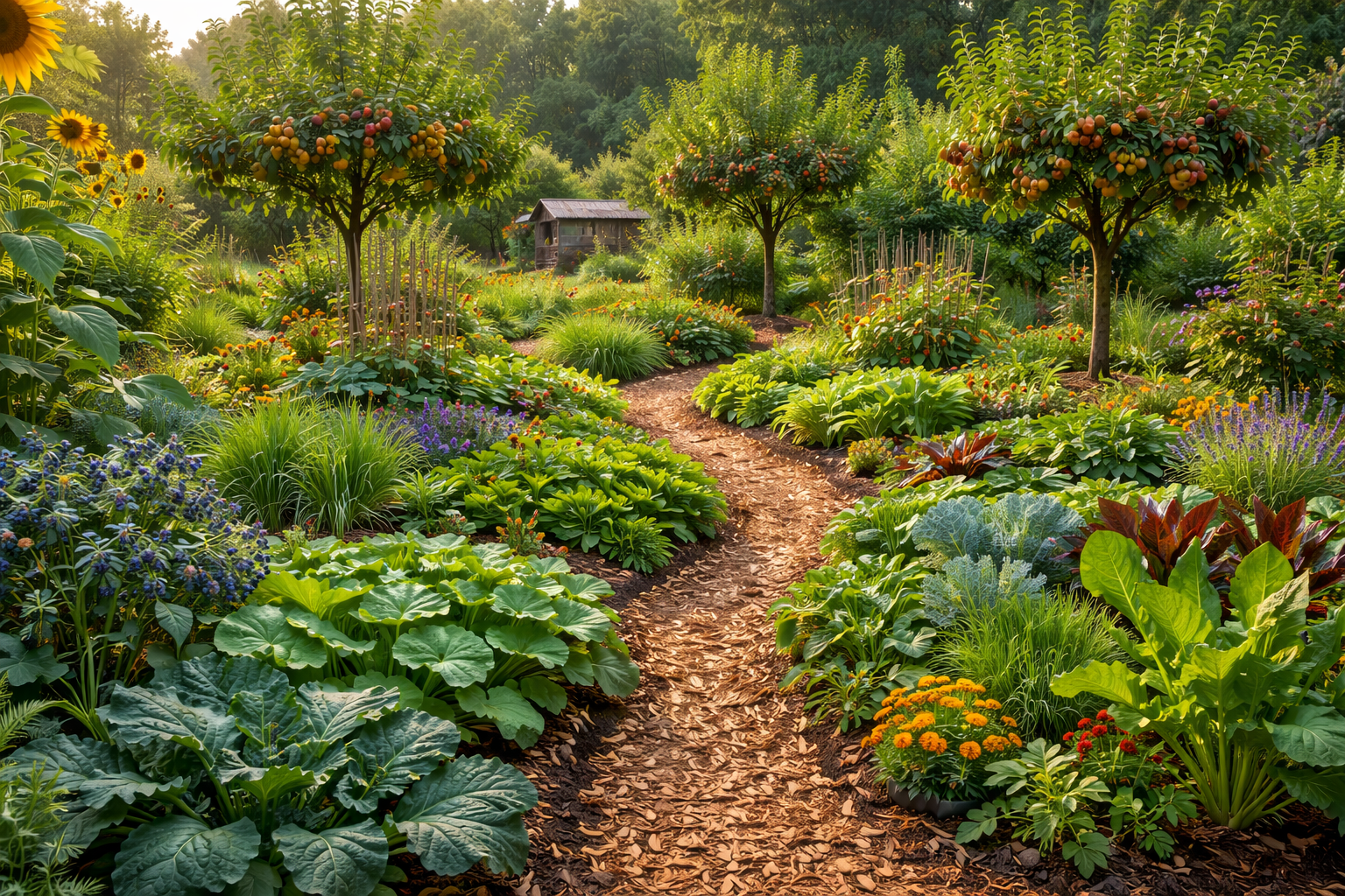 Once established, food forests require significantly less maintenance compared to traditional landscaping. Natural plant interactions reduce weed growth, improve soil conditions, and support pest balance. This results in a system that becomes easier to manage over time while maintaining productivity and visual appeal.