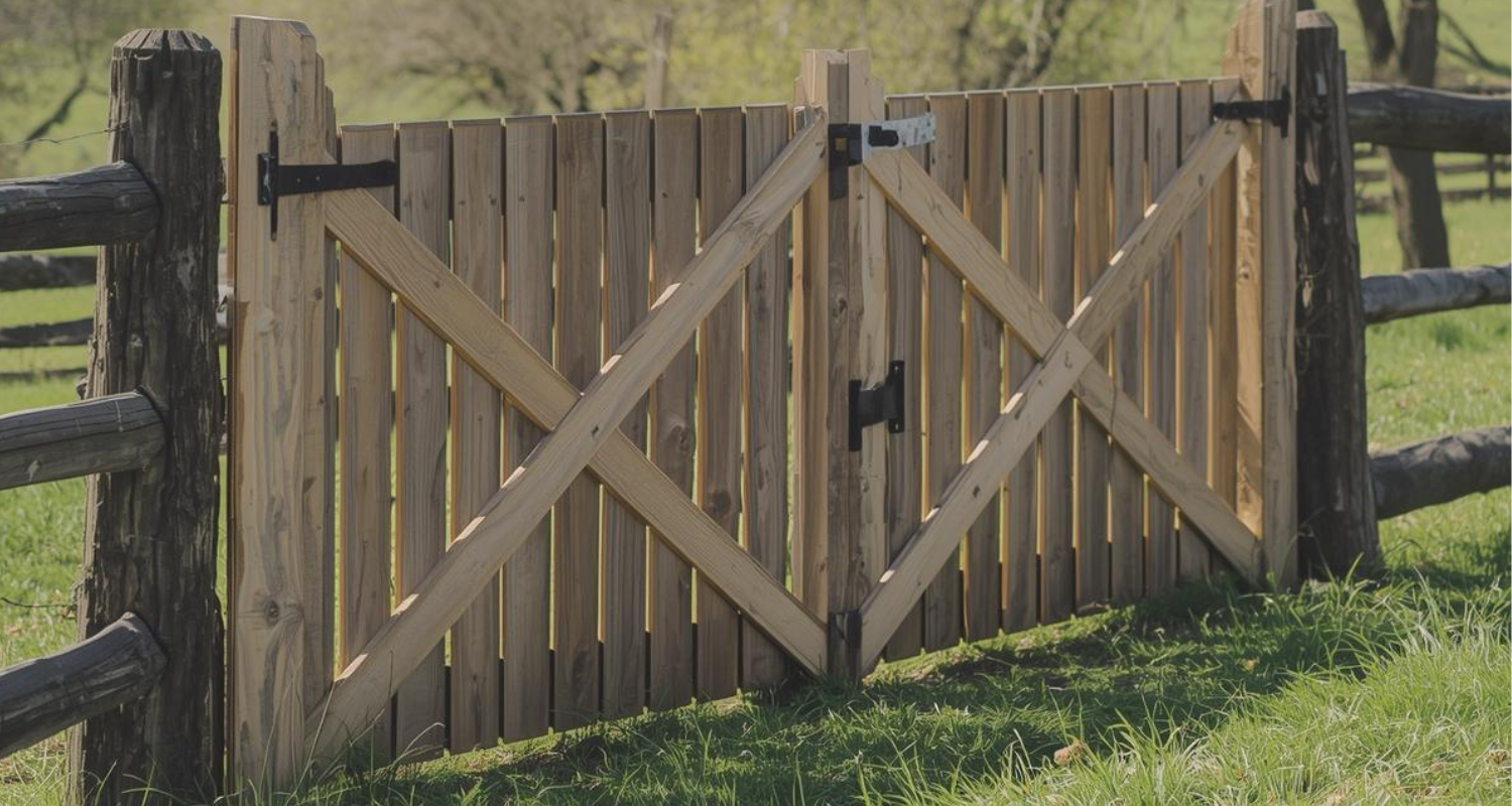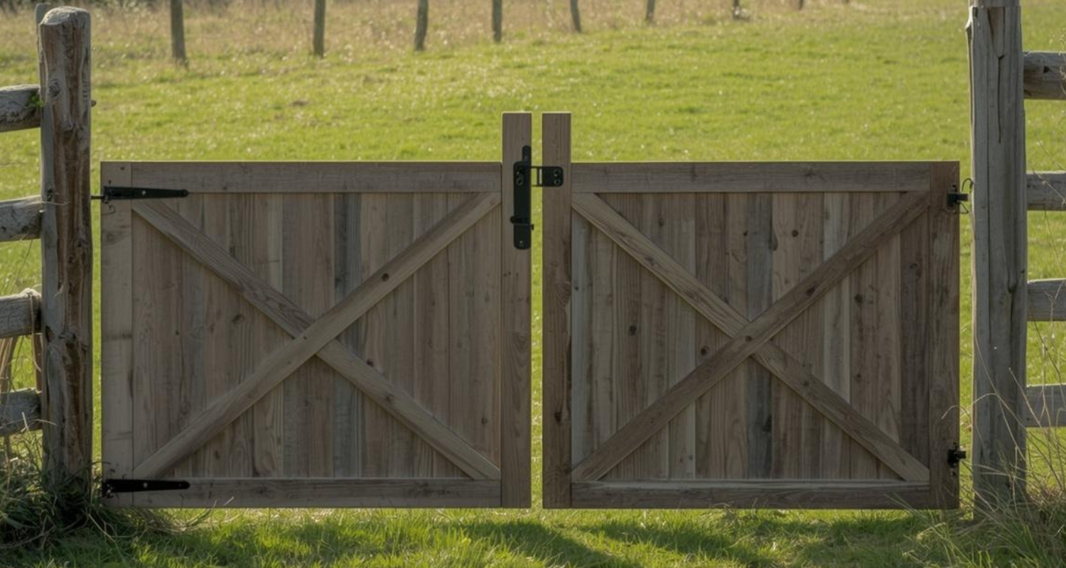 Large Double-Wide Wood Gates Designed for Functional Property Entry